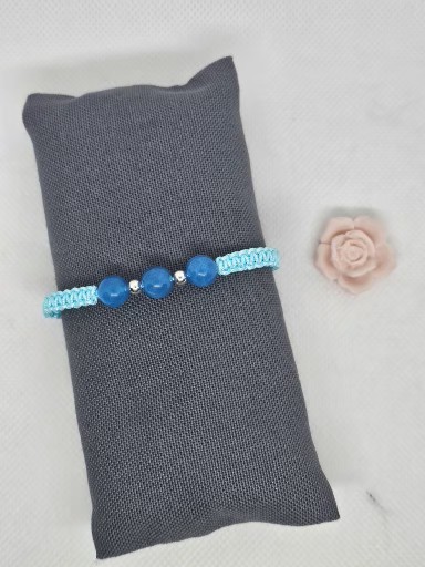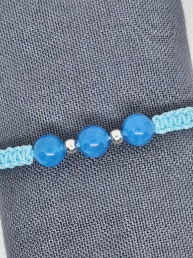 Macramé náramek z přírodního minerálu Křemen modrý a Láva . Korálky jsou velké 0,8 cm . Kovové korálky jsou stříbro AG925/1000 velikosti 0,4 cm .